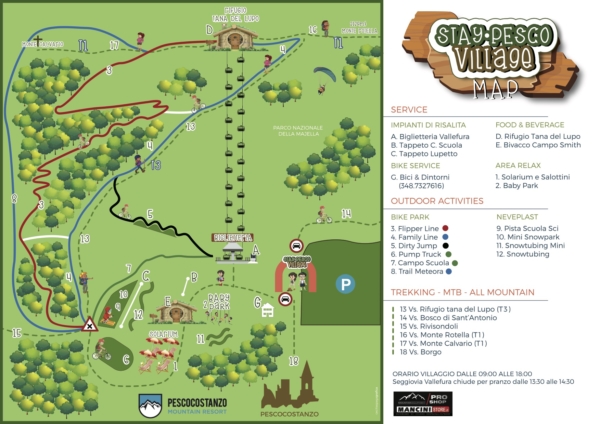 Il Pesco Snowpark è costituito da 3 linee: L, M, S. e 7 terrazzamenti. Servito da una comoda seggiovia biposto dispone anche dell’illuminazione per aperture in notturna. Head Shaper: Omar Ailone